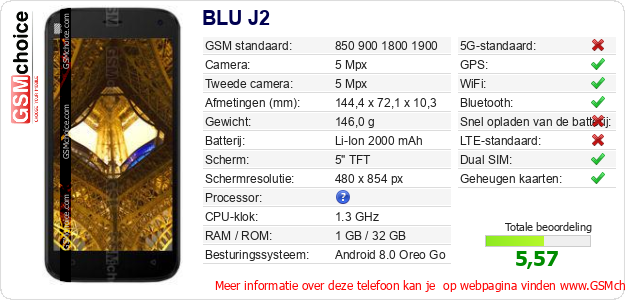 Verkoop je op ebay.com? Heb je jouw eigen webpagina? Als je de basisgegevens over BLU J2 ergens wilt publiceren, dan is het heel simpel. Het is voldoende om deze code te kopiëren en op jouw webpagina te plakken:Als je deze code plakt, dan wordt de onderstaande afbeelding getoond: