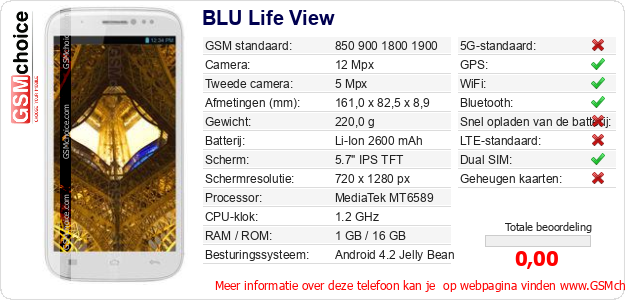 Gegevens van de telefoon BLU Life View op jouw webpagina