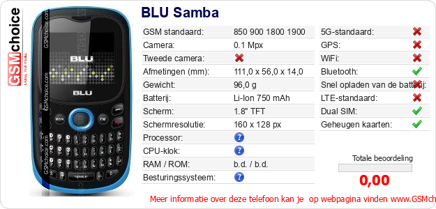 Gegevens van de telefoon BLU Samba op jouw webpagina