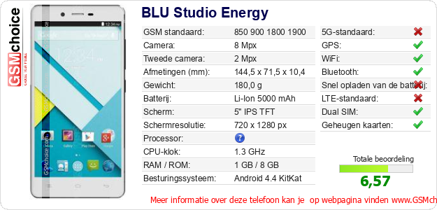 Gegevens van de telefoon BLU Studio Energy op jouw webpagina