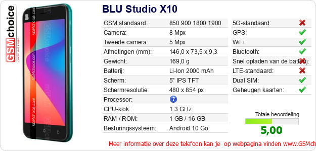 Gegevens van de telefoon BLU Studio X10 op jouw webpagina