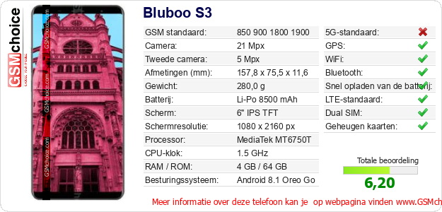 Gegevens van de telefoon Bluboo S3 op jouw webpagina