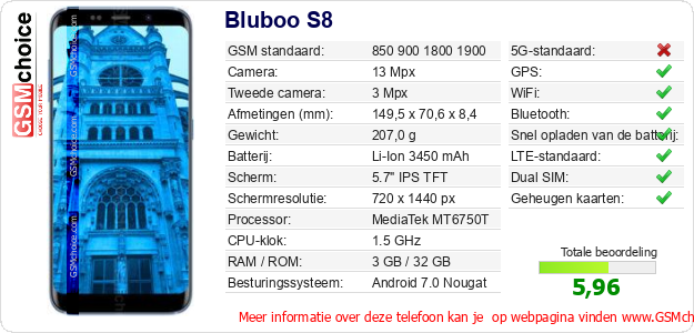 Gegevens van de telefoon Bluboo S8 op jouw webpagina