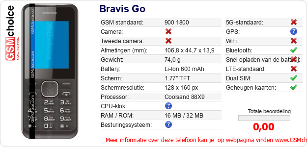 Gegevens van de telefoon Bravis Go op jouw webpagina
