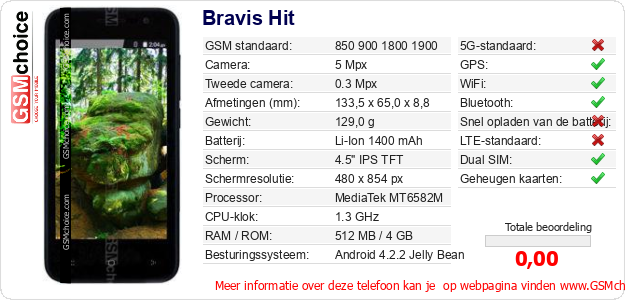 Gegevens van de telefoon Bravis Hit op jouw webpagina