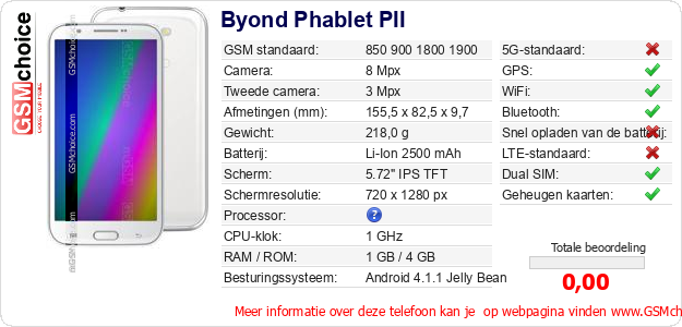 Gegevens van de telefoon Byond Phablet PII op jouw webpagina