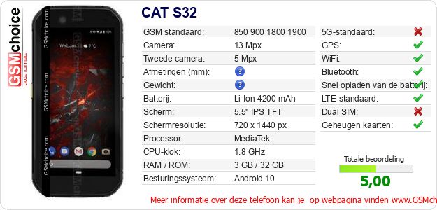 Gegevens van de telefoon CAT S32 op jouw webpagina