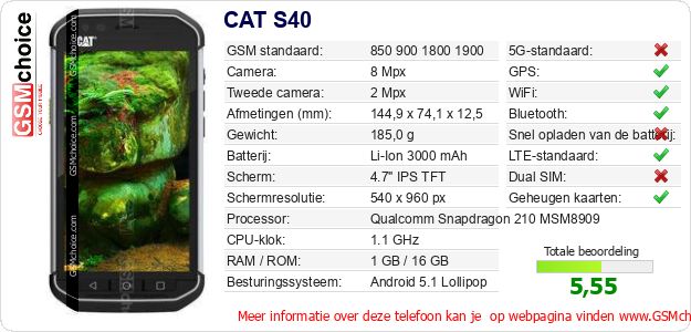 Gegevens van de telefoon CAT S40 op jouw webpagina