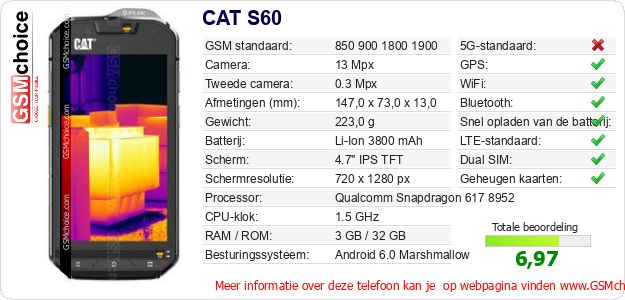 Gegevens van de telefoon CAT S60 op jouw webpagina