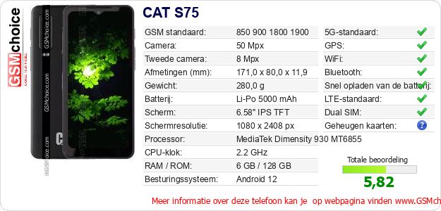 Gegevens van de telefoon CAT S75 op jouw webpagina