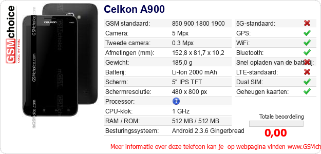 Gegevens van de telefoon Celkon A900 op jouw webpagina