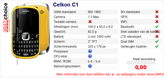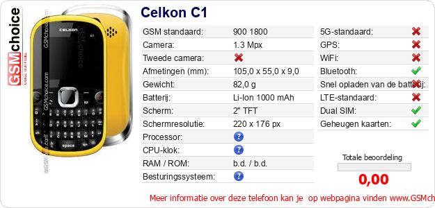 Gegevens van de telefoon Celkon C1 op jouw webpagina