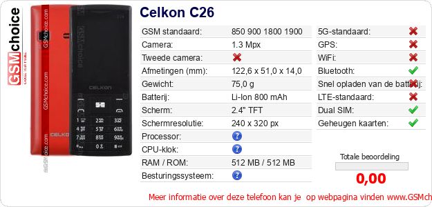 Gegevens van de telefoon Celkon C26 op jouw webpagina
