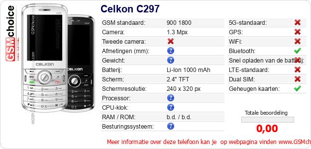 Gegevens van de telefoon Celkon C297 op jouw webpagina