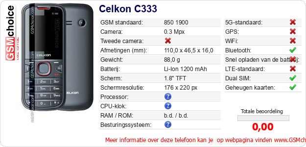 Gegevens van de telefoon Celkon C333 op jouw webpagina