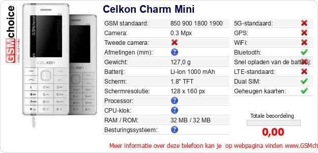 Gegevens van de telefoon Celkon Charm Mini op jouw webpagina