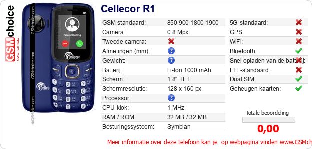 Gegevens van de telefoon Cellecor R1 op jouw webpagina