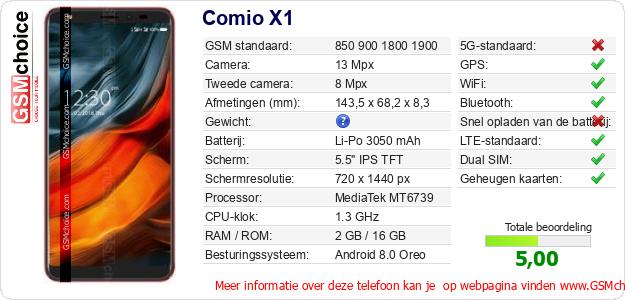 Gegevens van de telefoon Comio X1 op jouw webpagina