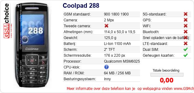 Gegevens van de telefoon Coolpad 288 op jouw webpagina