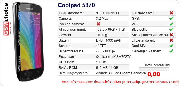 Gegevens van de telefoon Coolpad 5870 op jouw webpagina