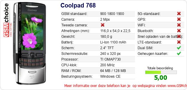 Gegevens van de telefoon Coolpad 768 op jouw webpagina