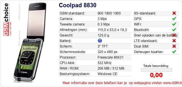 Gegevens van de telefoon Coolpad 8830 op jouw webpagina