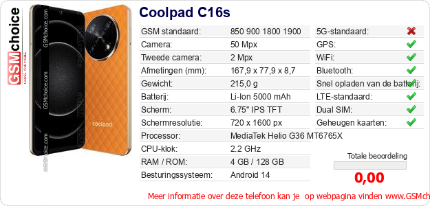 Gegevens van de telefoon Coolpad C16s op jouw webpagina