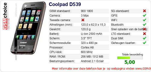 Gegevens van de telefoon Coolpad D539 op jouw webpagina