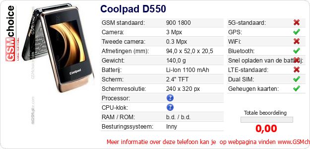 Gegevens van de telefoon Coolpad D550 op jouw webpagina