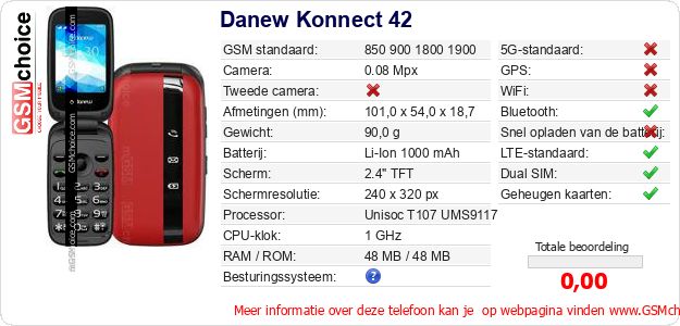 Gegevens van de telefoon Danew Konnect 42 op jouw webpagina