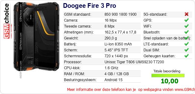 Gegevens van de telefoon Doogee Fire 3 Pro op jouw webpagina