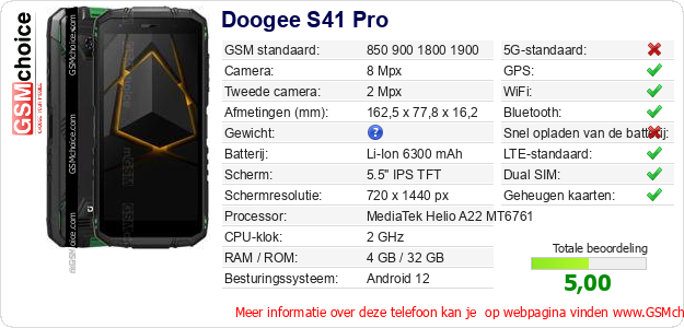 Gegevens van de telefoon Doogee S41 Pro op jouw webpagina