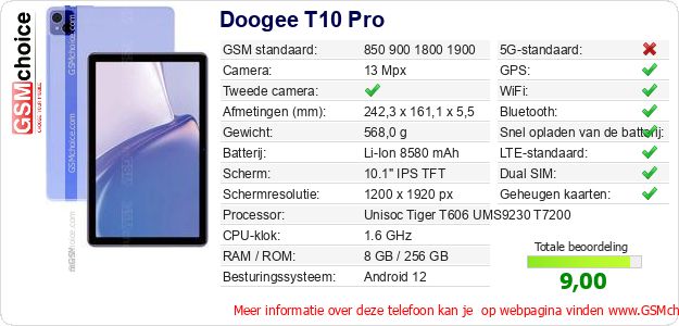 Gegevens van de telefoon Doogee T10 Pro op jouw webpagina