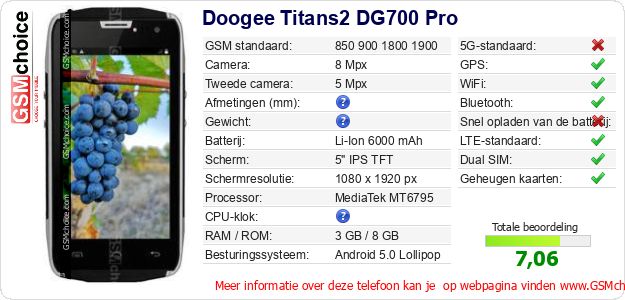 Gegevens van de telefoon Doogee Titans2 DG700 Pro op jouw webpagina