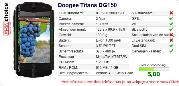 Gegevens van de telefoon Doogee Titans DG150 op jouw webpagina