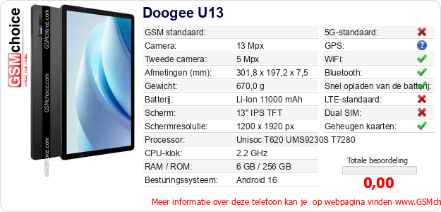 Gegevens van de telefoon Doogee U13 op jouw webpagina