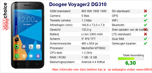 Gegevens van de telefoon Doogee Voyager2 DG310 op jouw webpagina