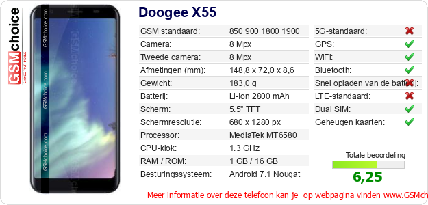 Gegevens van de telefoon Doogee X55 op jouw webpagina