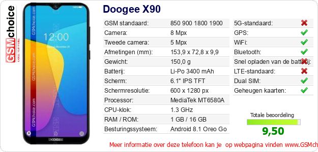 Gegevens van de telefoon Doogee X90 op jouw webpagina