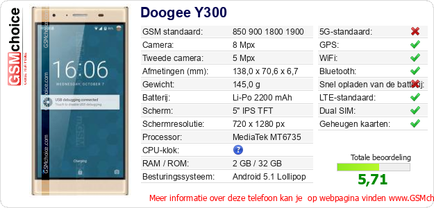 Gegevens van de telefoon Doogee Y300 op jouw webpagina