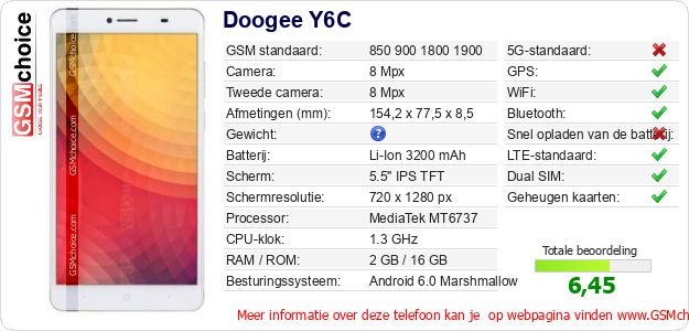 Gegevens van de telefoon Doogee Y6C op jouw webpagina