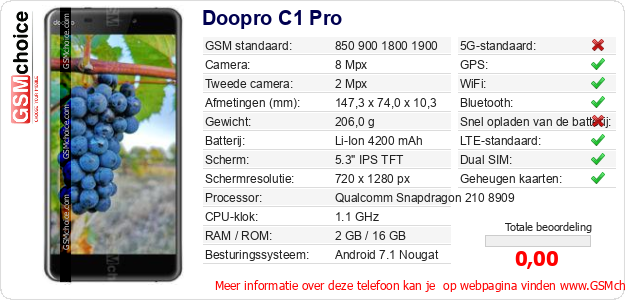 Gegevens van de telefoon Doopro C1 Pro op jouw webpagina