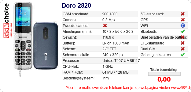 Gegevens van de telefoon Doro 2820 op jouw webpagina
