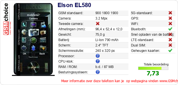 Gegevens van de telefoon Elson EL580 op jouw webpagina