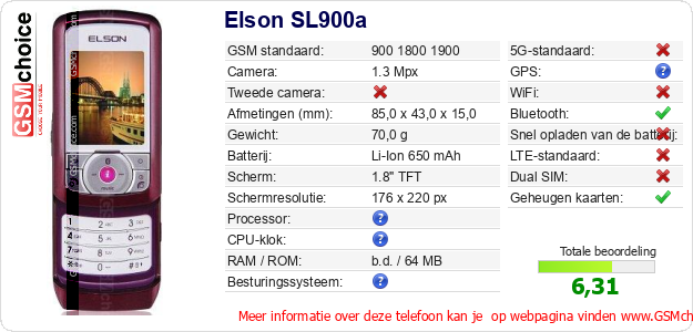 Gegevens van de telefoon Elson SL900a op jouw webpagina