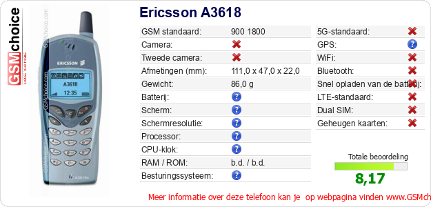 Gegevens van de telefoon Ericsson A3618 op jouw webpagina
