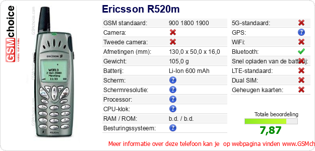 Gegevens van de telefoon Ericsson R520m op jouw webpagina