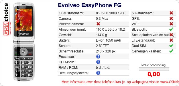 Gegevens van de telefoon Evolveo EasyPhone FG op jouw webpagina