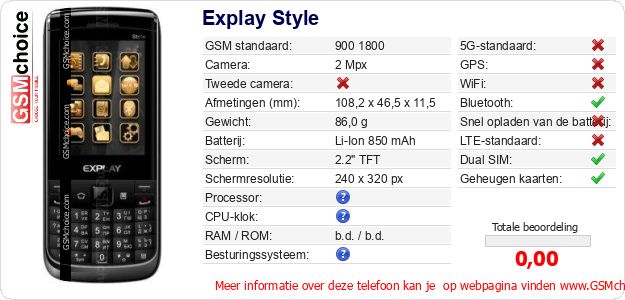 Gegevens van de telefoon Explay Style op jouw webpagina