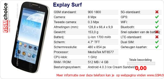 Gegevens van de telefoon Explay Surf op jouw webpagina
